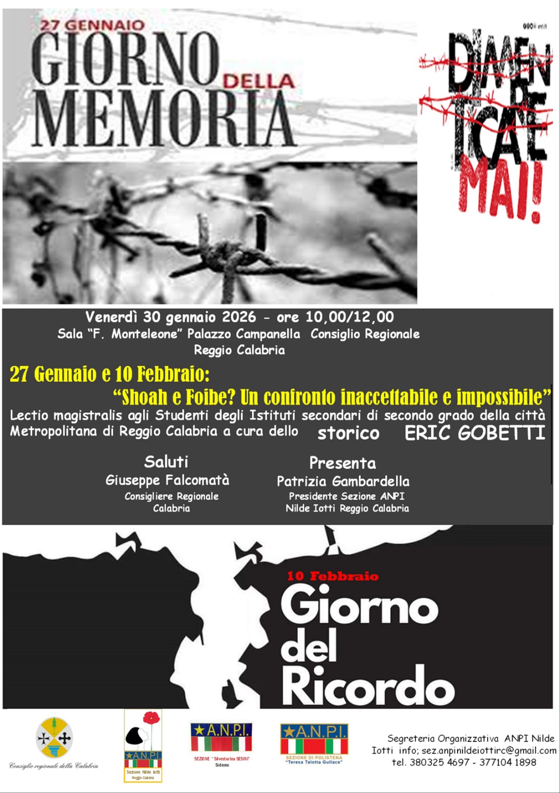 Incontro "27 gennaio e 10 febbraio: Shoah e Foibe? Un confronto inaccettabile e impossibile"